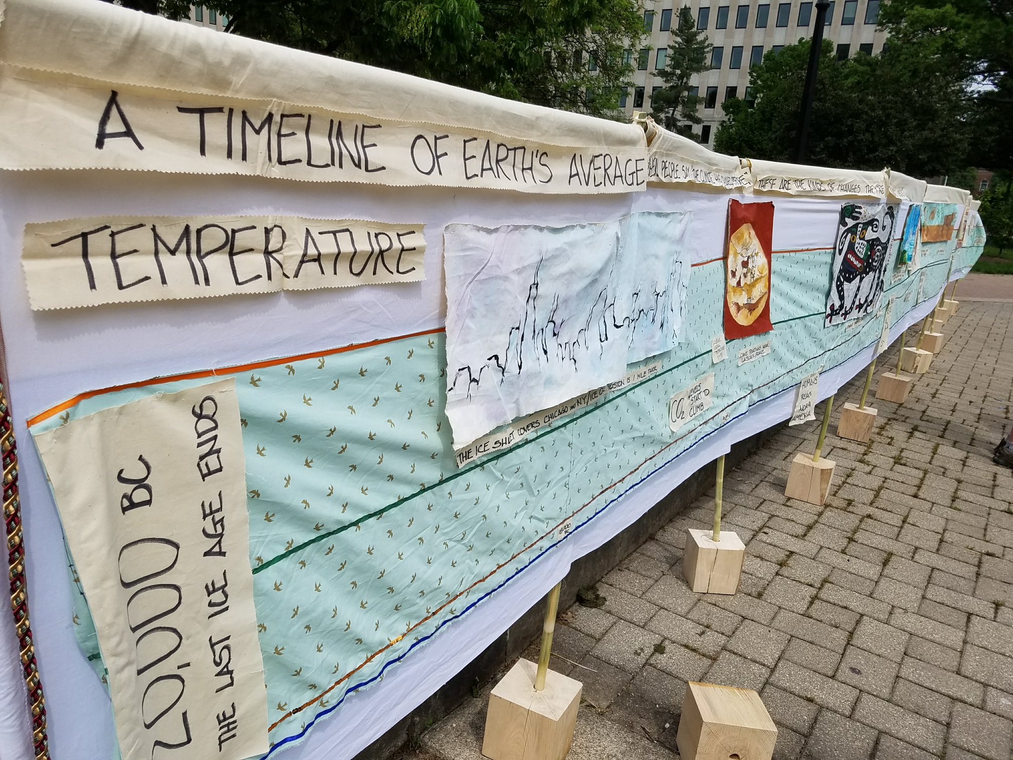 Several co-sponsoring groups had displays and booths including Citizens’ Climate Lobby (CCL) and the West Virginia Chapter of the Sierra Club. CCL unveiled their new climate timeline display and their affiliate, Mid-Ohio Valley Climate Action brought their banner and led the march to the Capitol. Several members of the WV Electric Auto Association had their wheels on display and were available for questions.