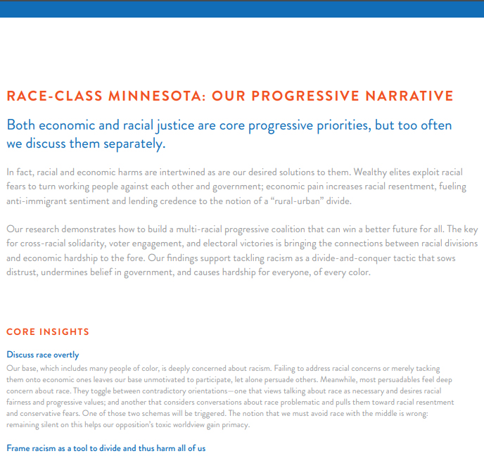 RACE-CLASS MINNESOTA: OUR PROGRESSIVE NARRATIVE