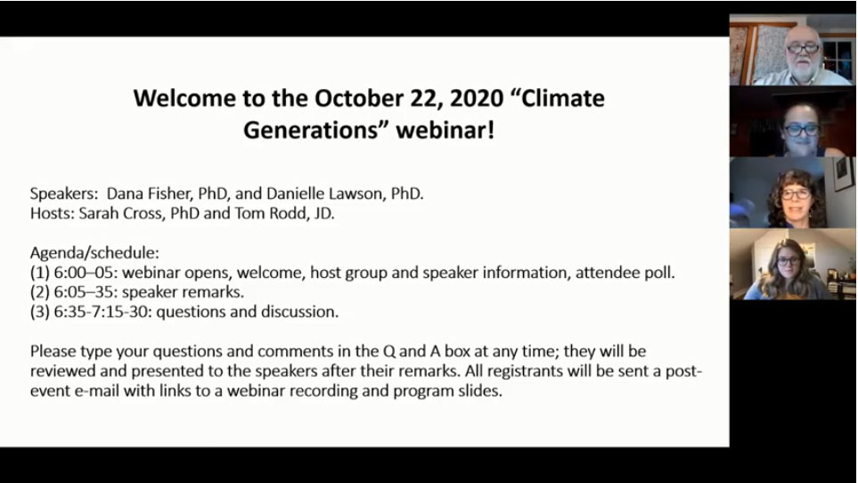 VIDEO – “Climate Generations” Webinar, October 22, 2020: from the West Virginia Center on Climate Change