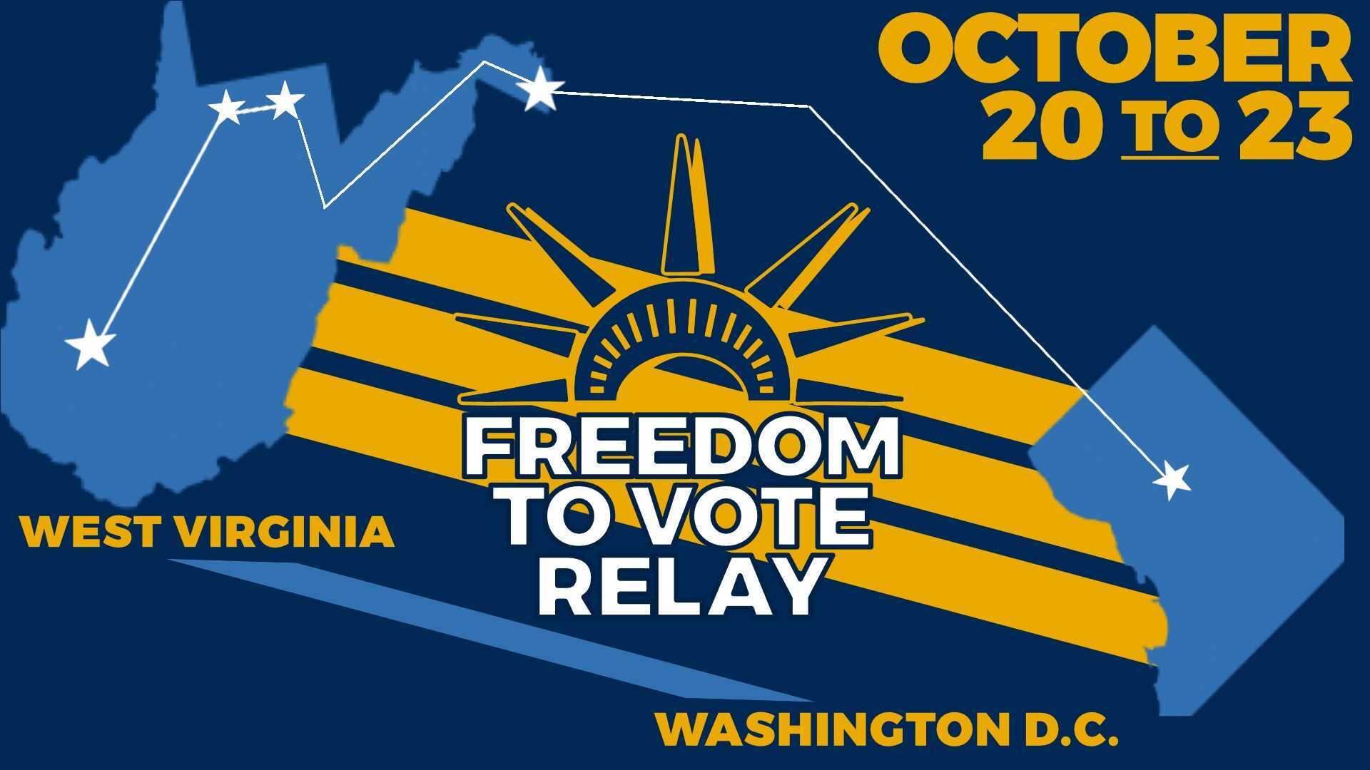 Join us on the caravan/relay from West Virginia to D.C., the Rally at the Finish Line on October 23rd, or stops along the way. With a major vote expected later this week, we need to push harder than ever to make sure the Senate does what it takes get the #FreedomToVoteAct across the finish line.