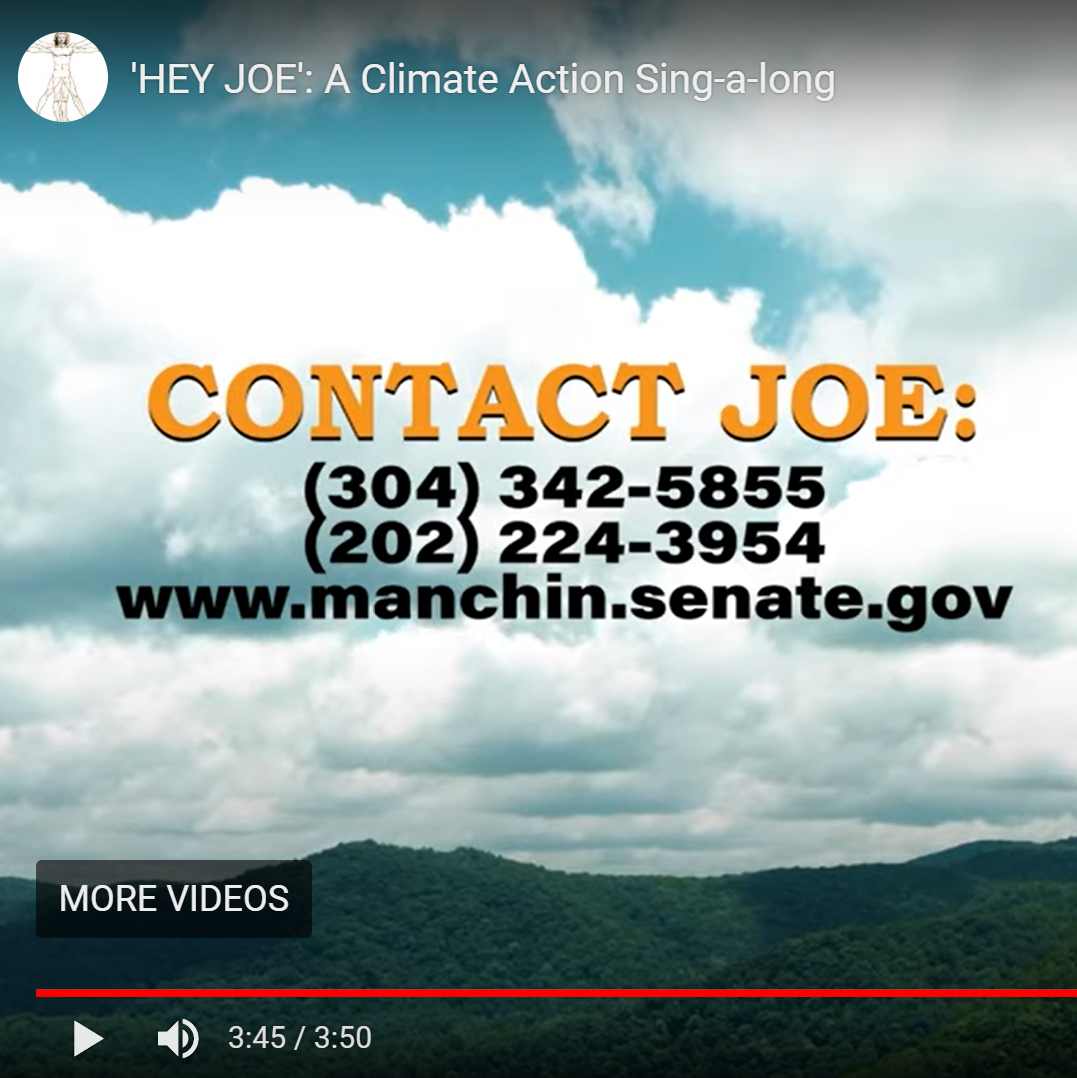 The AMP Media Project with support from West Virginia climate groups released nationally the climate action music video “Hey Joe” today, featuring crowds of people across West Virginia and beyond in a sing-a-long directed at WV Sen. Joe Manchin. (SEE bit.ly/HeyJoeVideo). “Hey Joe” (based on the Beatles’ tune ‘Hey Jude’), is written and led by prominent West Virginia singer-songwriter Ron Sowell, as almost 50 voices urge Manchin to support the climate initiatives in the Build Back Better Act before the U.S. Senate.