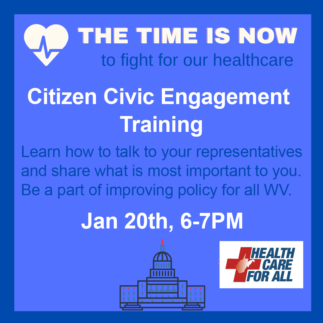 Join us for Health Care for All WV’s “Citizen Civic Engagement Training” this January 20th from 6-7PM.