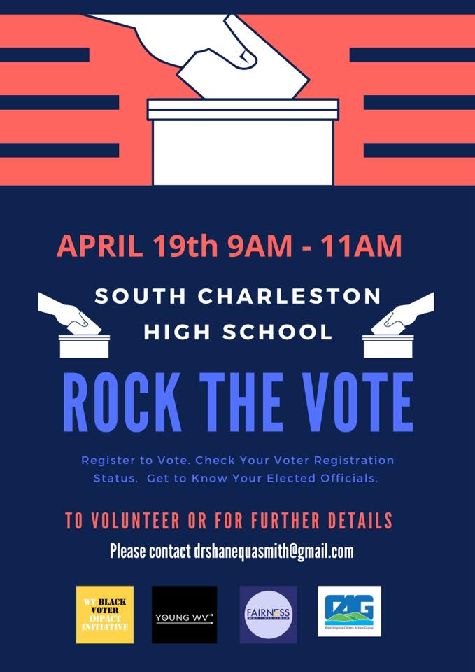 Rock The Vote South Charleston High School Eve Marcum-Atkinson April 15, 2022 Uncategorized April 19, 2022 9:00 am – 11:00 am Building the political power of young people. 1 Eagle Way, South Charleston, WV – TUESDAY, APRIL 19, 2022 AT 9 AM – 11 AM