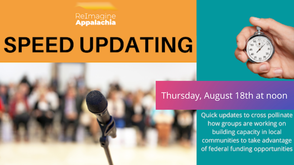 Join us on Thursday, August 18th to hear a series of short presentations on the amazing work Appalachian groups are doing to build capacity and bring federal funding to Appalachia.