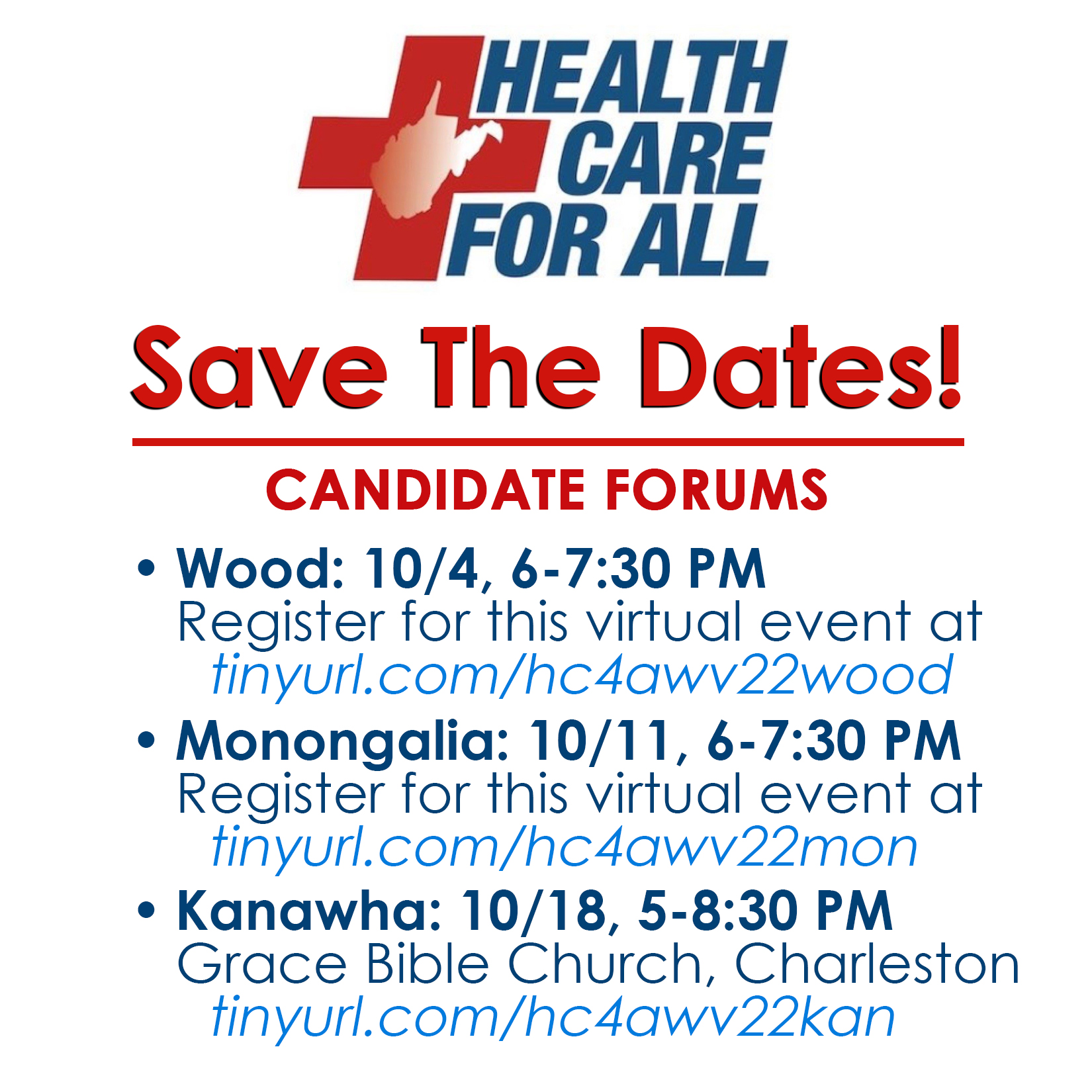 You are cordially invited to attend and participate in our Virtual Candidate Forum for the Wood County region, on the topic of Health Care, on Tuesday, Oct. 4th, from 6-7:30 PM.