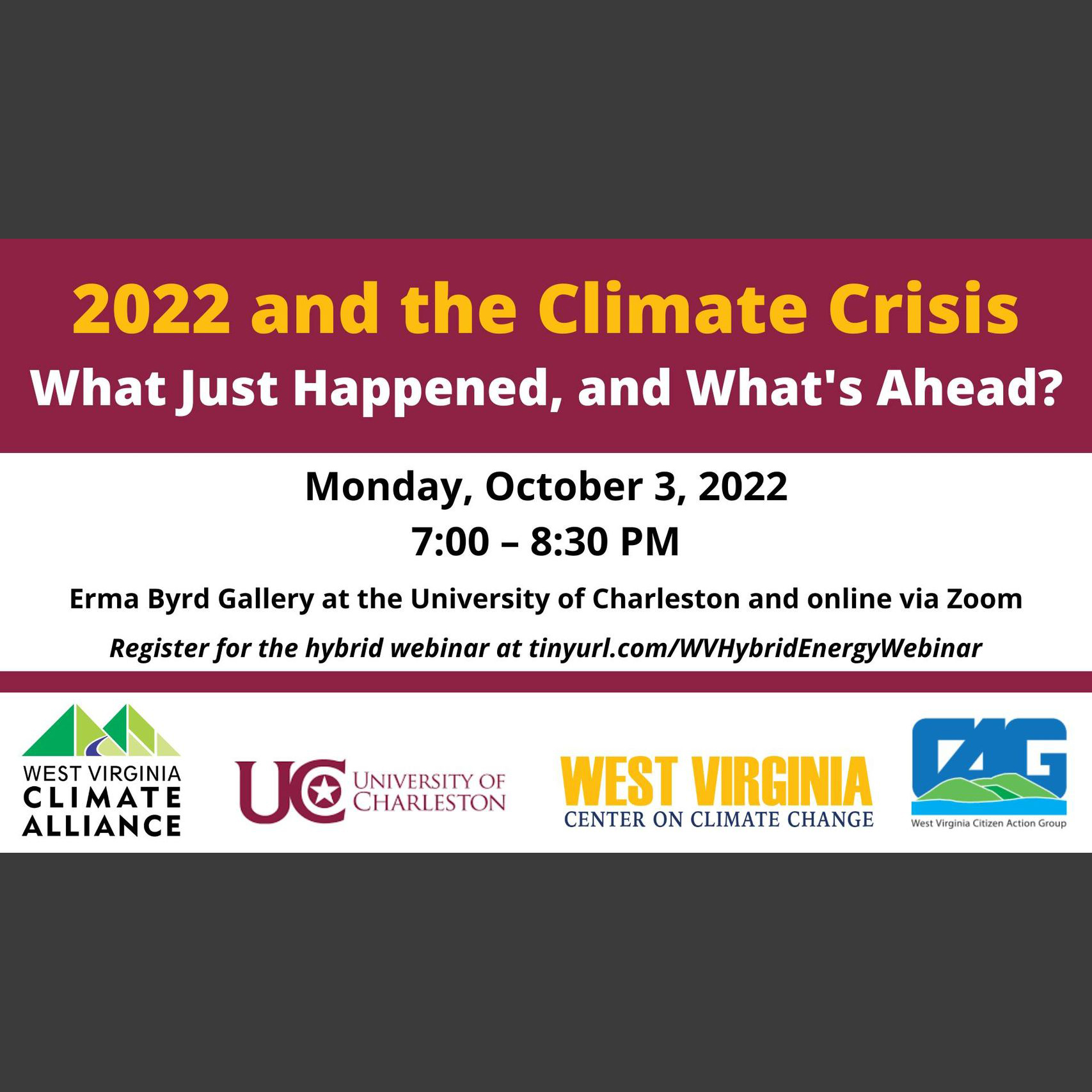 Announcing a live Hybrid Webinar to be held on Monday, October 3, 2022 — in-person in Charleston, West Virginia, and online via Zoom.