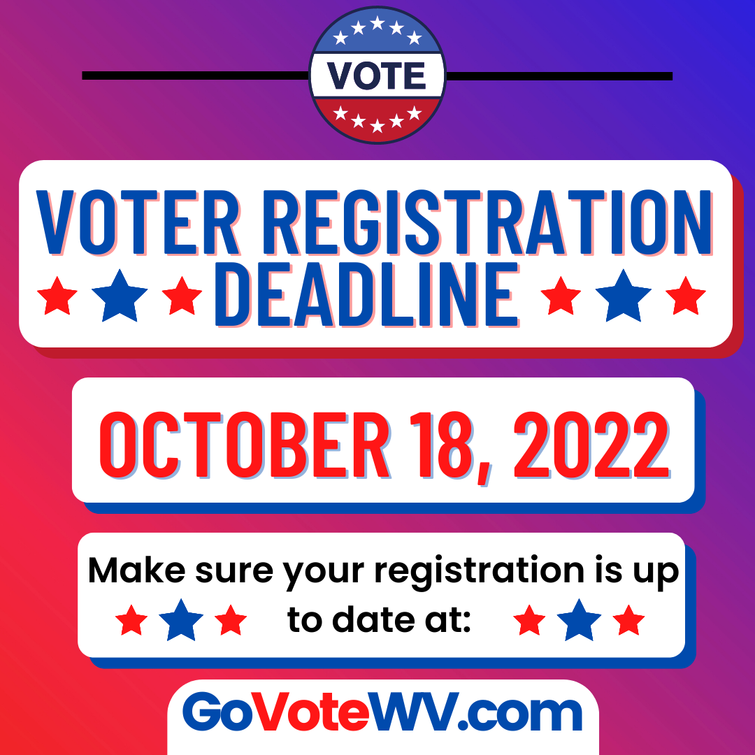 Register or update your registration online at GoVoteWV.com OR check with your county clerk to learn about other ways to register to vote in this election.
