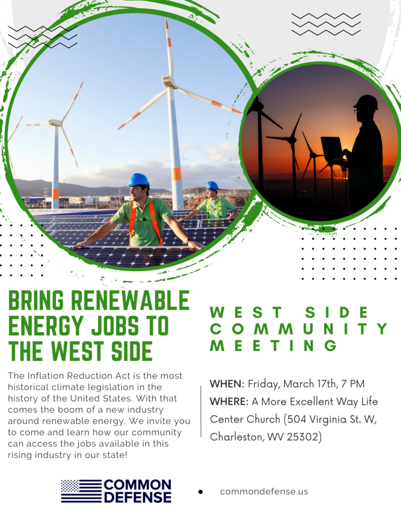 If your organization would like to support and participate in this community meeting or have any questions, please contact Lakiesha Lloyd at lakiesha@commondefense.us or call 304-641-1881.