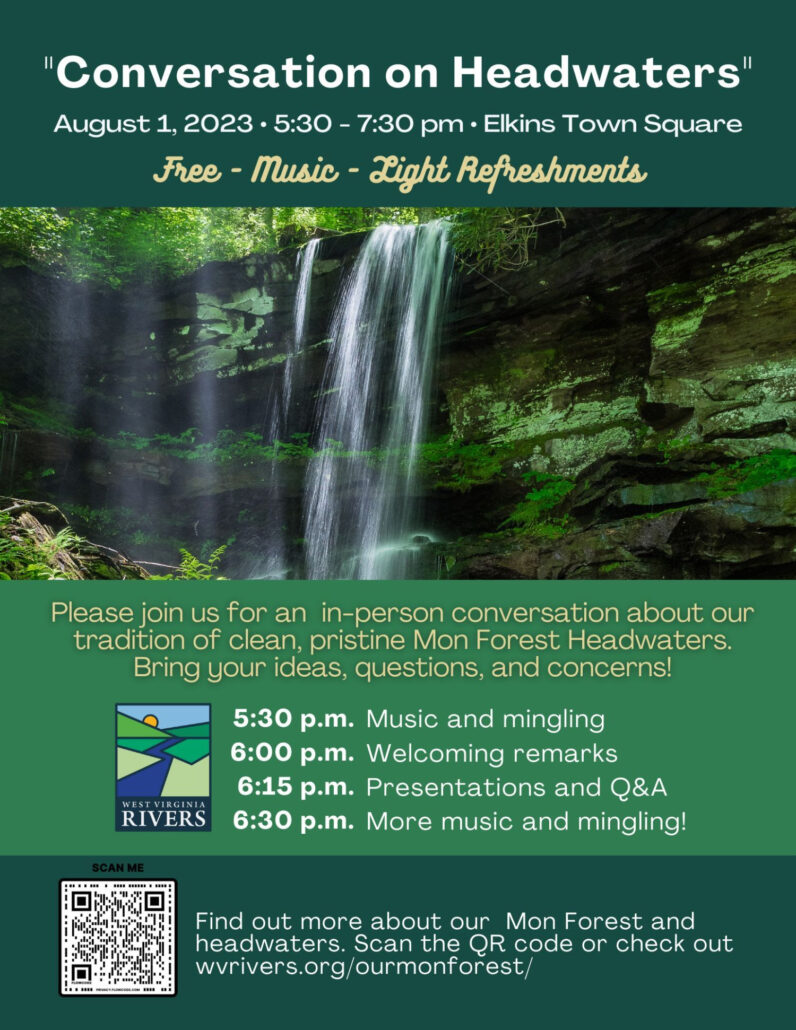 Please join the gathering at Elkins Town Square (at the Depot). It’s a free event and no registration is needed. There will be live music, light refreshments, and information regarding the importance of Mon Forest headwaters and the work WV Rivers is doing in the Mon Forest. Attendees will have an opportunity to ask questions and get more information about the Mon Forest headwaters – and share their ideas and concerns.